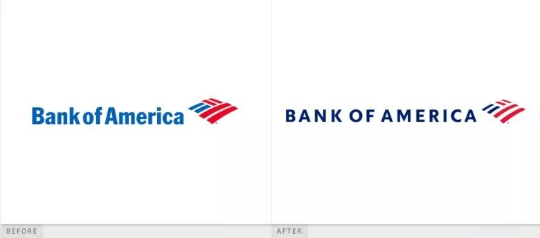 当然,除了Facebook,美国银行的新logo也是全大写,将logo变为无衬线的简洁大写字体,体现极简、现代的品牌风格。