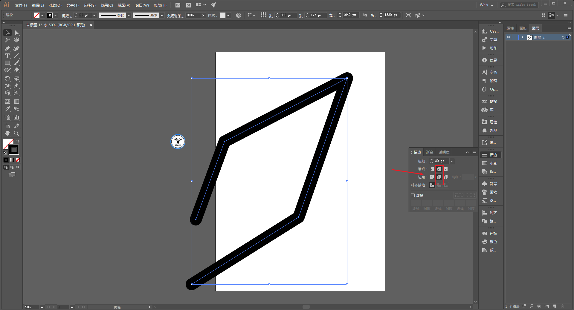 用剪刀工具剪开箭头所示的地方,删除多余的路径: