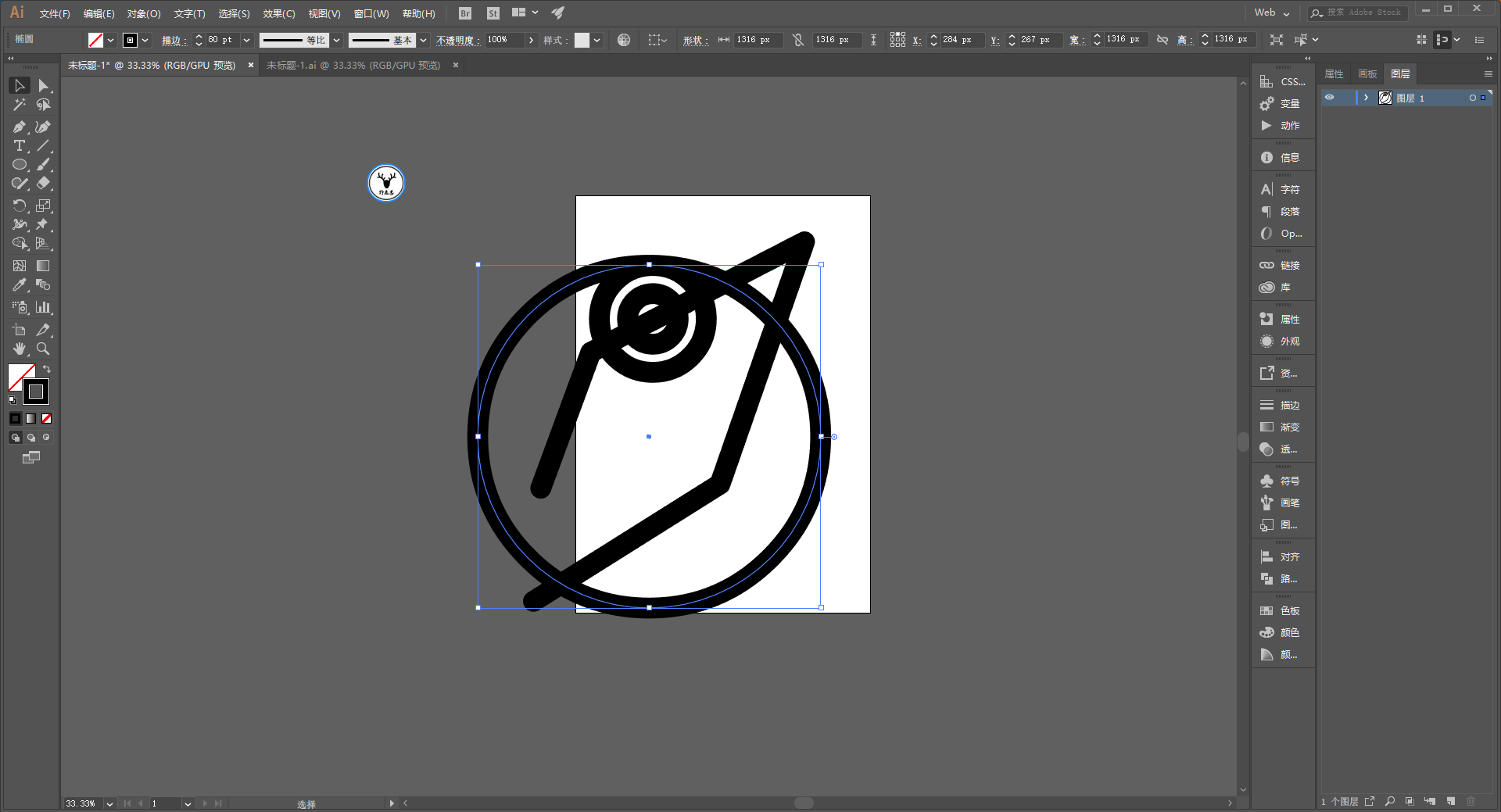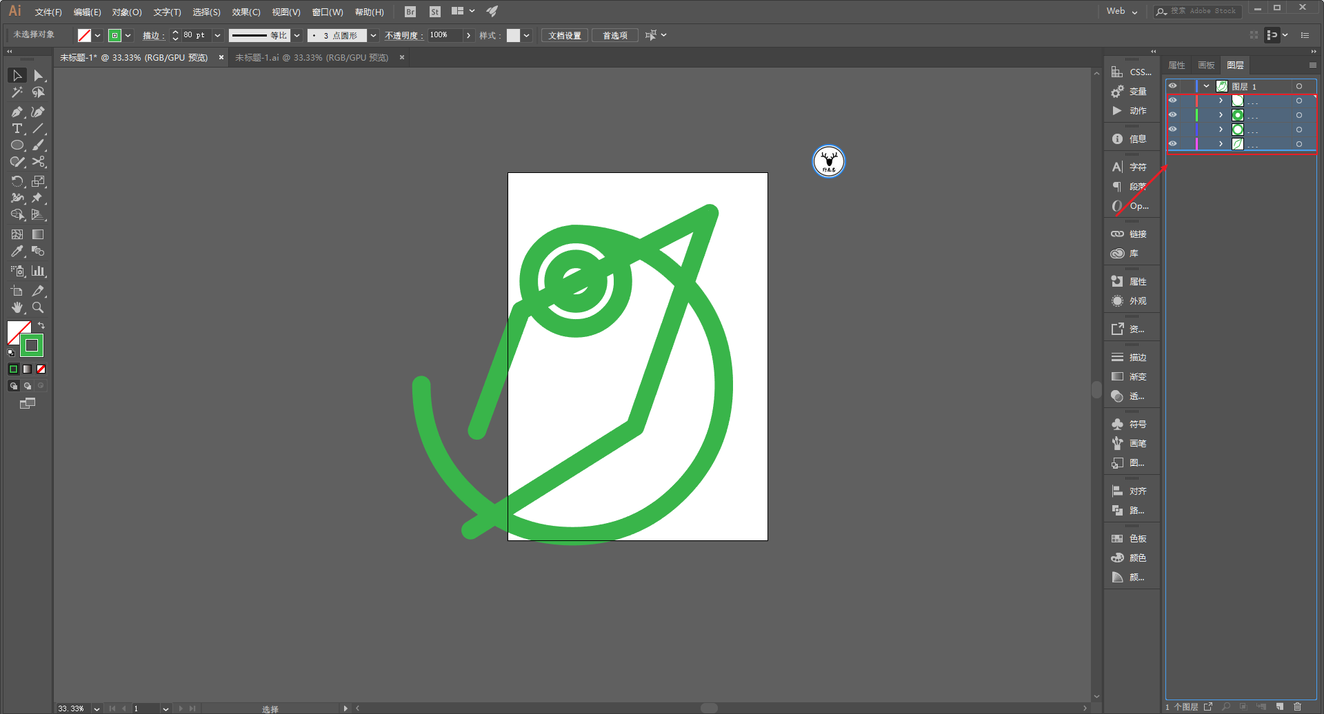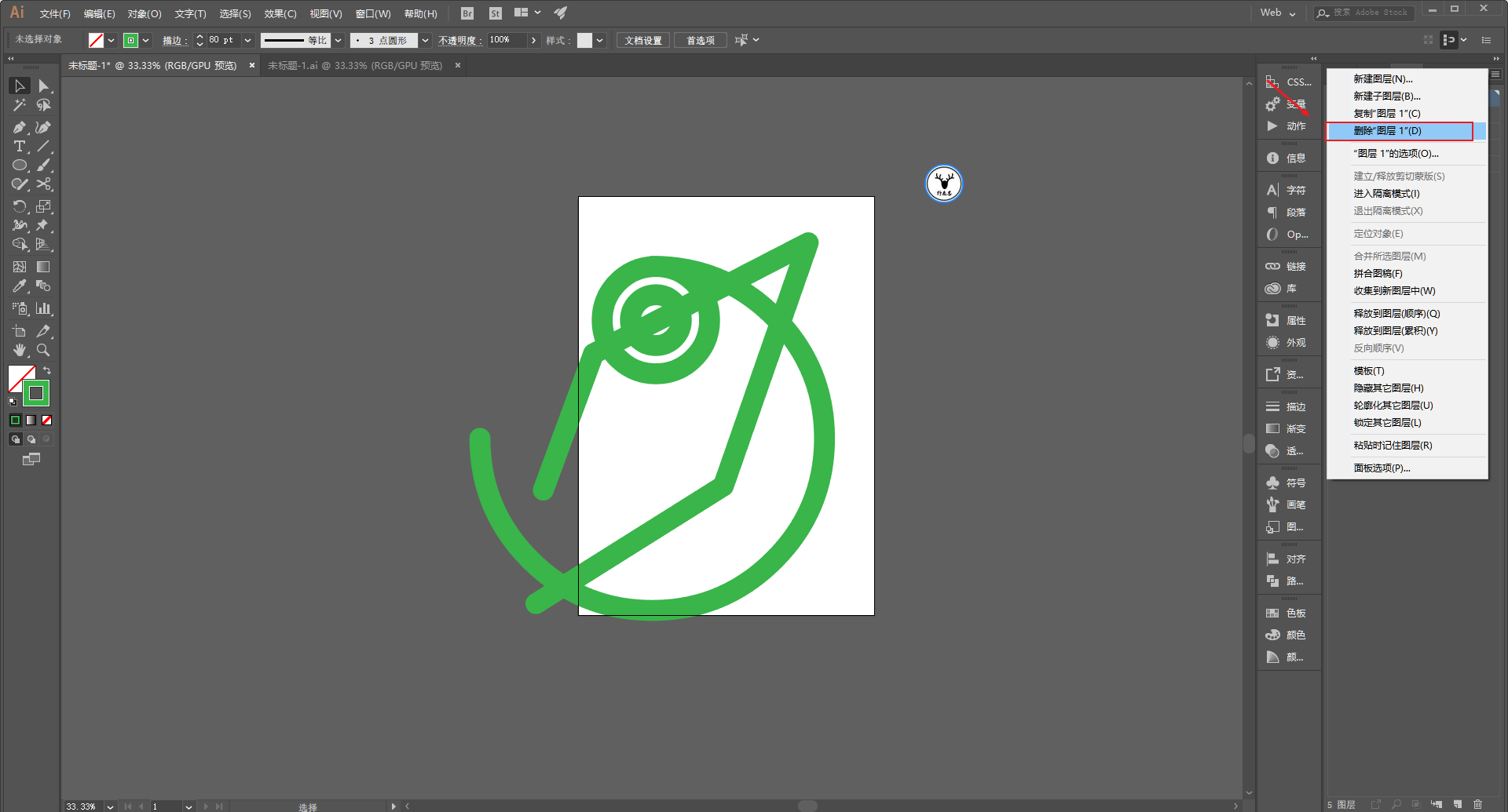 这个时候图层1就会变成空图层,删除以后就可以保存AI文件了: