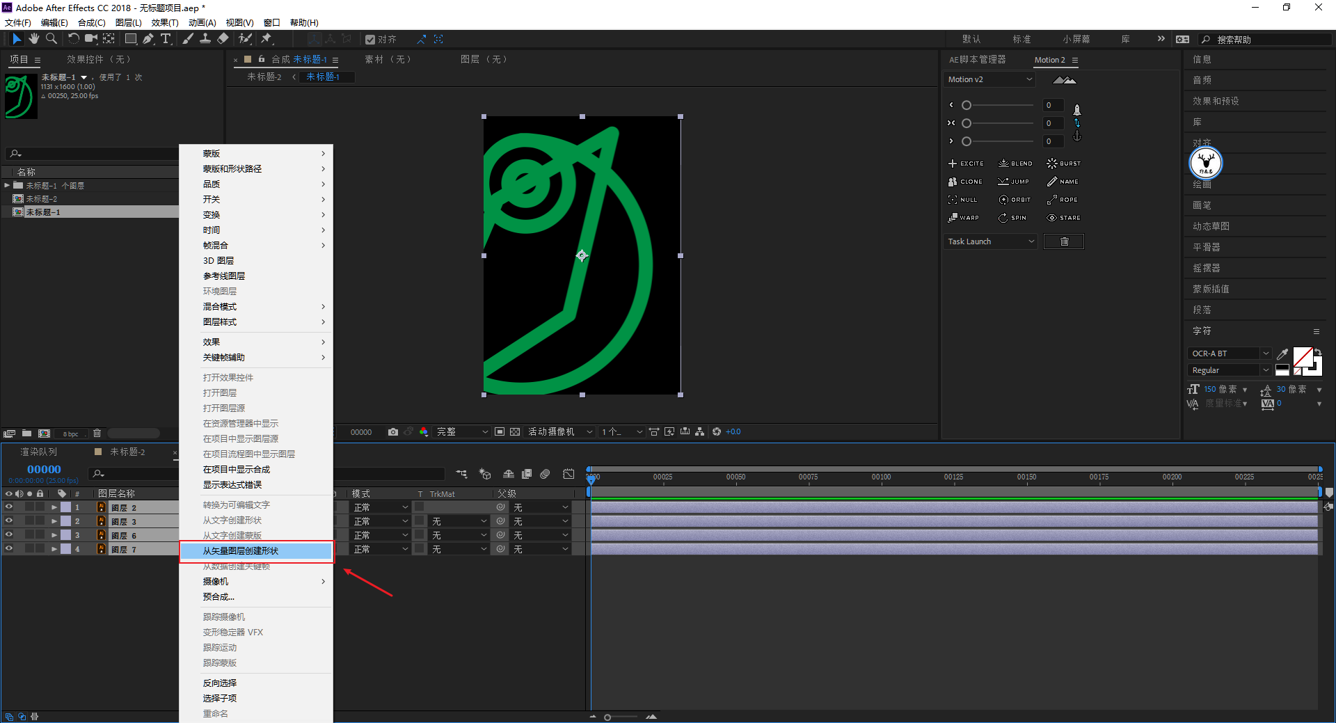 全选所有图层,鼠标右键从矢量图层创建形状: