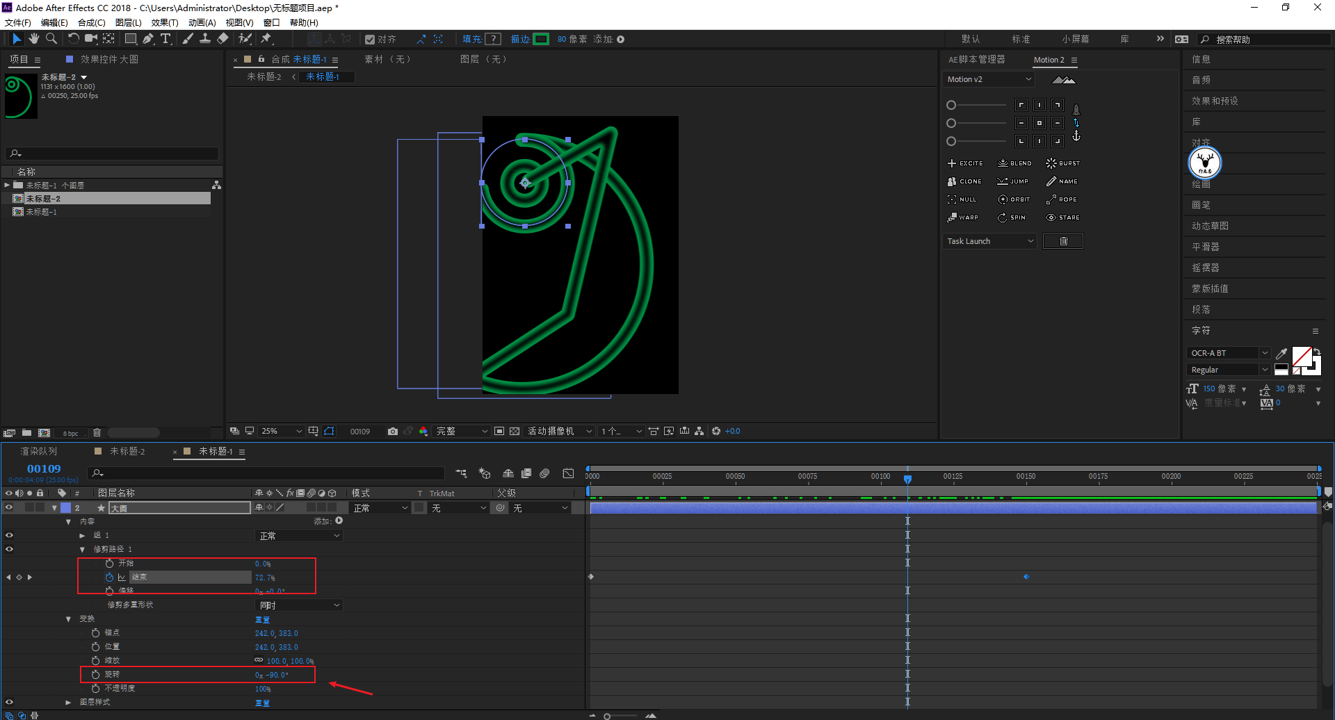 然后再通过开始或者结束的参数来控制路径的生长K关键帧就行了,其实还是蛮简单的: