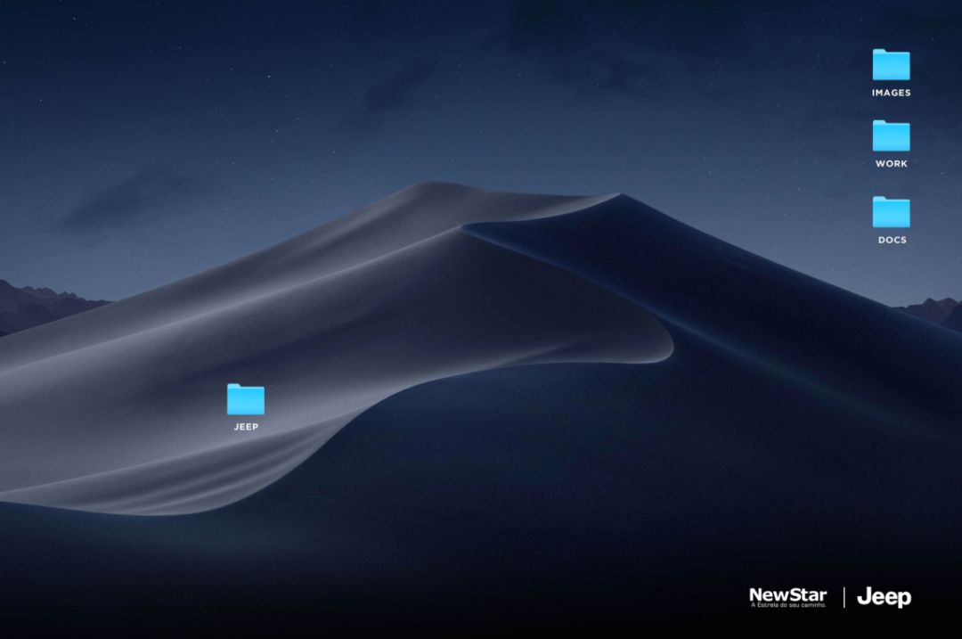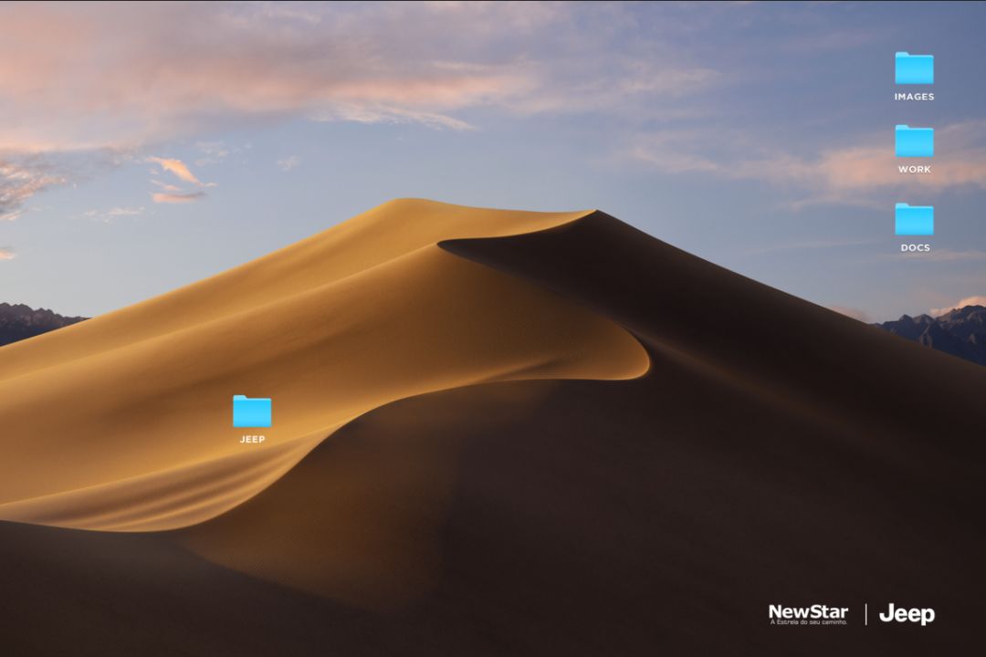 这个广告创意天马行空,超凡脱俗。利用苹果沙漠壁纸当背景,把文件夹暗喻成吉普车,构造了一张吉普车在沙漠上行走的画面。