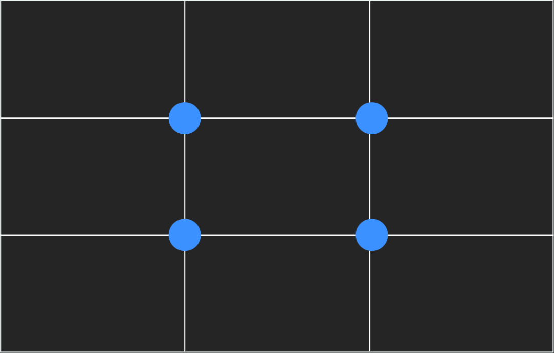 三分法是一些设计师、摄影师和其他视觉艺术家采用的构图方法,就是你需要把重要的构图元素放在这些线或者线的交点上,这个交点被称为“趣味点”,它在构图上使用不对称来创造视觉趣味和平衡。