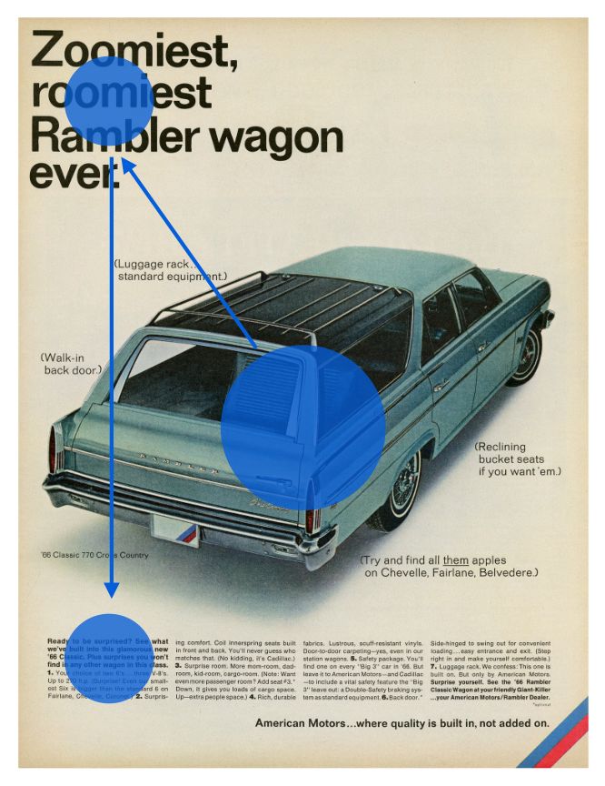 这张是先被汽车吸引,然后从标题往车的方向移动,最后到下面的正文。