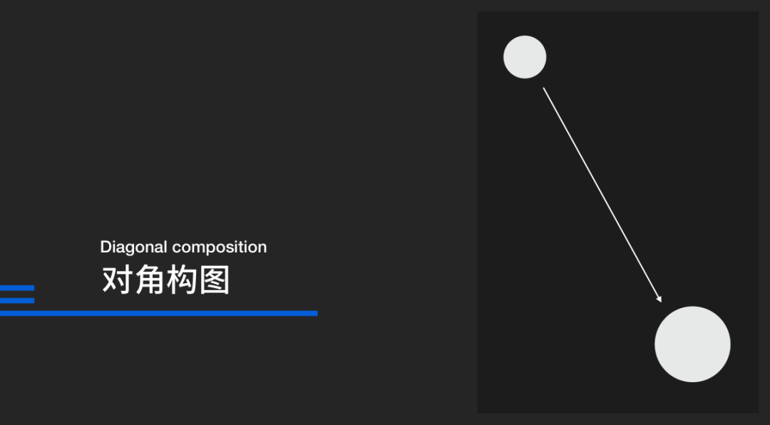 而角对角结构,指的是引观看者的视线从版面的一角移到另一角,而且观看者的视线可以以对角线的方式快速地移动,也可以用更蜿蜒的方式从一个图形元素缓慢地移动到下一个图形元素,把引导线按对角线方向分布,能带着观众视线自然地 “走” 遍整个画面。