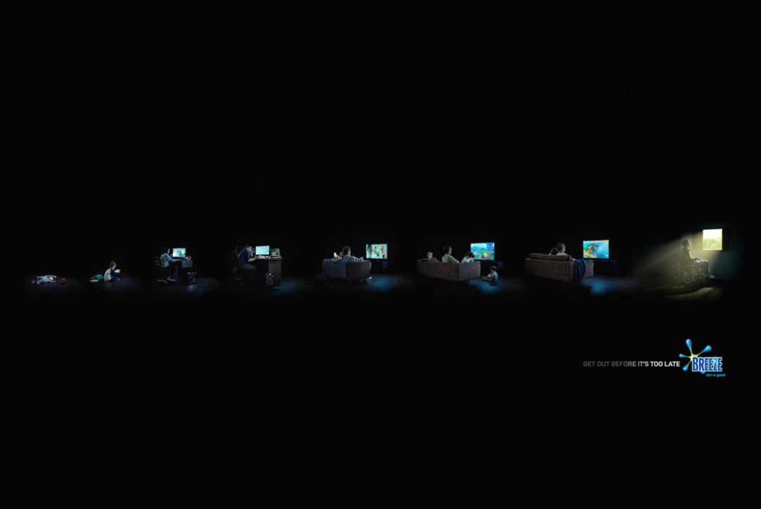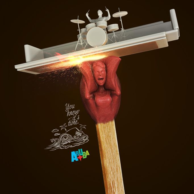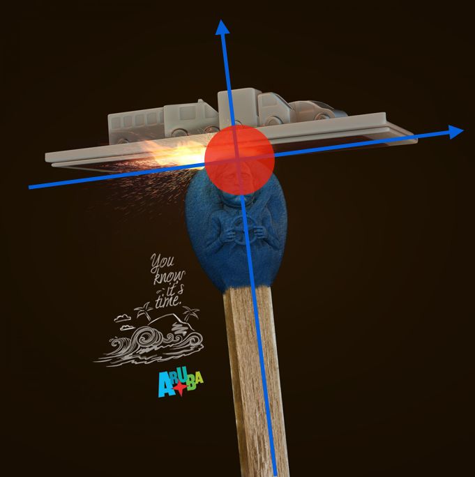 在这个广告中,能看到两条对角线相交于一个点,这个交点刚好在火柴和白模上,这给图片增加了视觉观感。也使得你的注意力集中在他们痛苦的脸上。除了制造动感之外,吸引你注意力也是这张构图的意义所在。