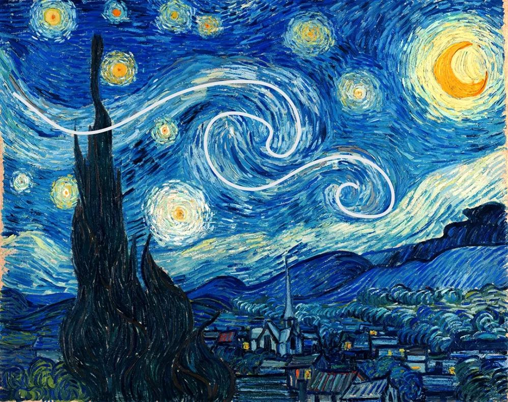 如果对格式塔心理学的另一个定律——连续性律有所了解的话,那会找到一些更能够引领观众视线、并创造出韵律和整体感的方法。其中最让人赏心悦目的就是藤蔓线,梵高的这幅画展现了美丽的藤蔓线。