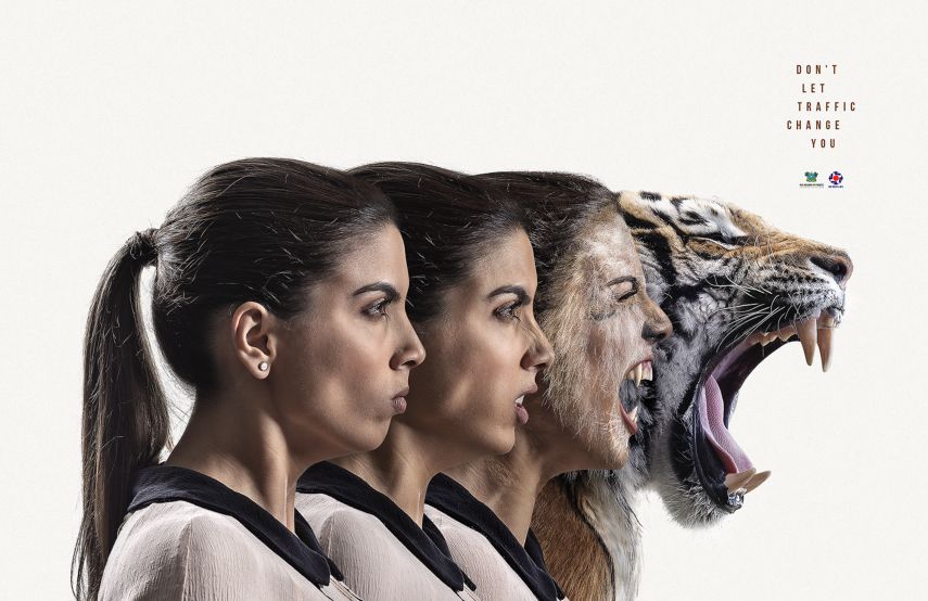 空间间隔和过渡有助于节奏和流动,通过关注过渡,整个构图将会有机地相互联系在一起,例如这个广告,“不要让交通改变你”,把人遇到交通堵塞时候心情变化做了一个很好的过渡,由此你就会了解有效过渡对于平滑视觉动作的重要性。