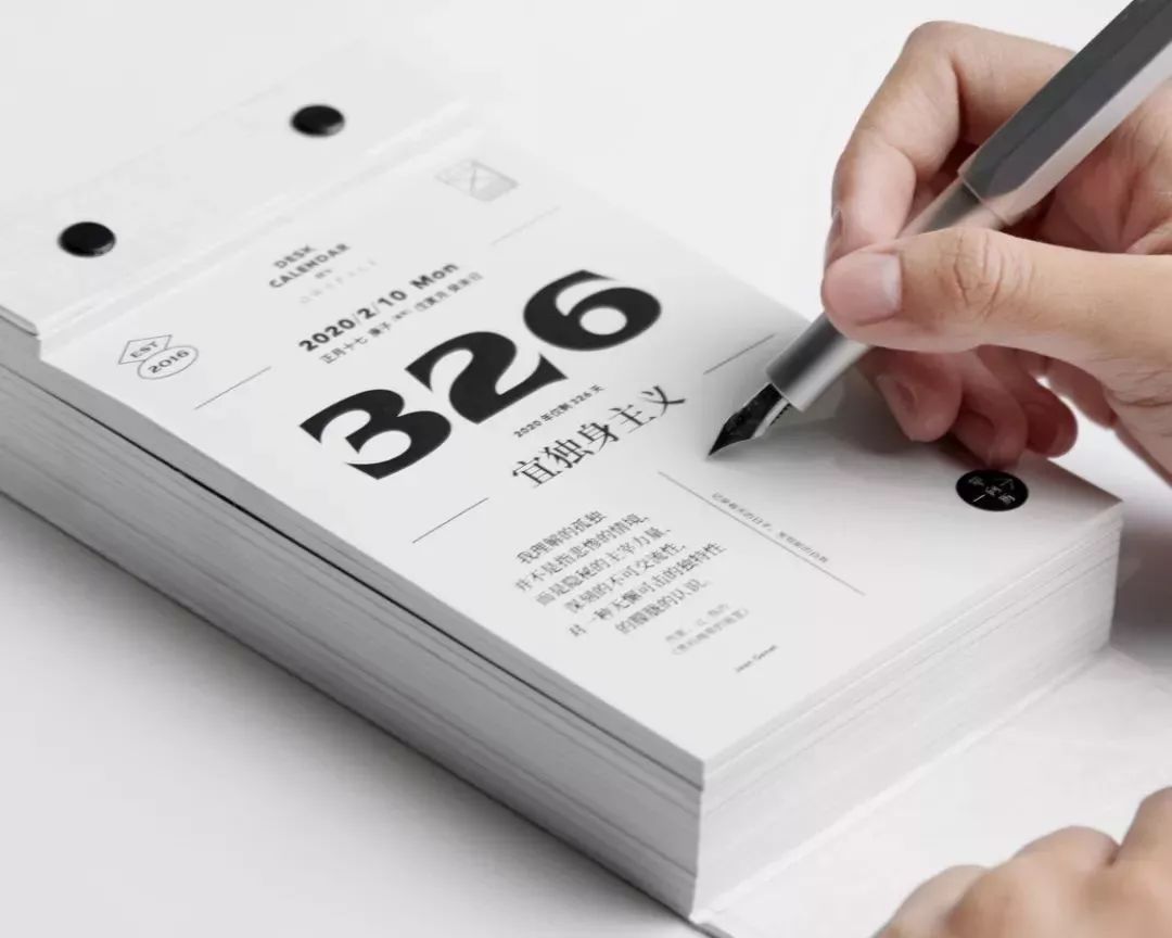 2020,单向历最大的特点是首次开启个人定制,即用户挑选其中一天,写下它的宜忌、句子和落款,定制独一无二的单向历。