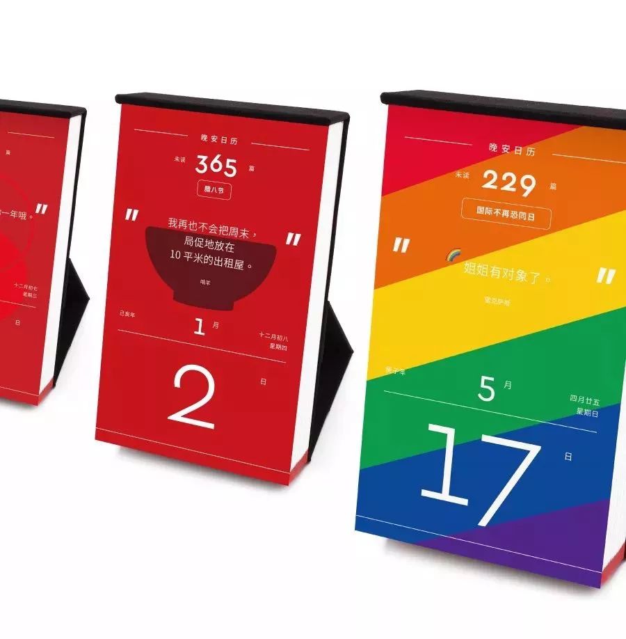 2020晚安日历最特别之处,在于将用户参与度最大化,其中的内容素材均来自读者的故事征集,就连两款色彩设计也由读者票选。