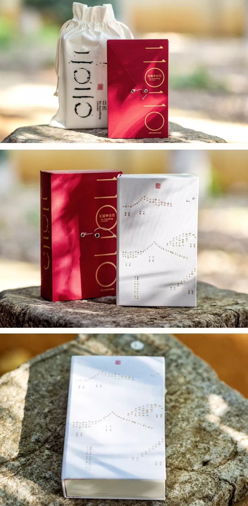 用布来做日历封面,烫印最为常见,但这次尝试采用两款潘通专色墨印刷,烫金烫白。