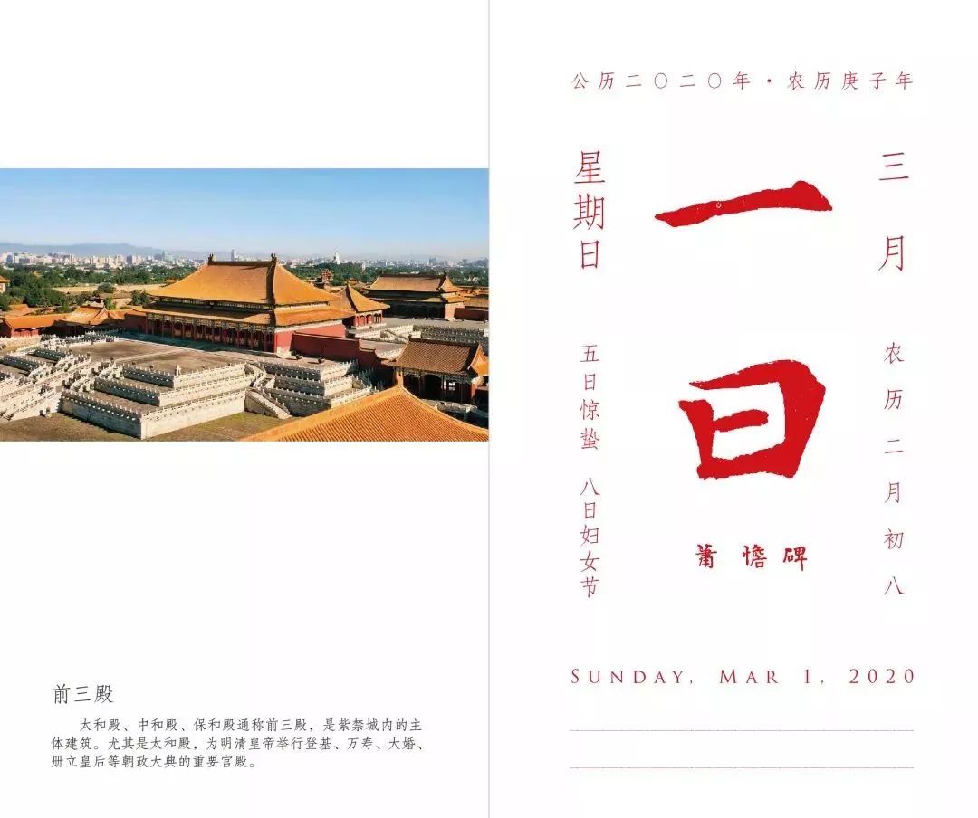 2020年将迎来紫禁城建成600周年,《故宫日历》也为此特别呈现《故宫日历·2020》,引领大家完成一次纸上的故宫之旅,全览紫禁城建筑之美,回顾明清两朝宫廷往事。
