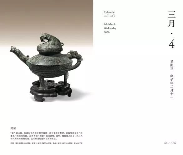 翻开日历,呈现的是2020年的每一天,也是完整的历史进程。每一页记录一件精美文物,具备收藏价值的同时,每一天都能认识珍贵的历史文物。