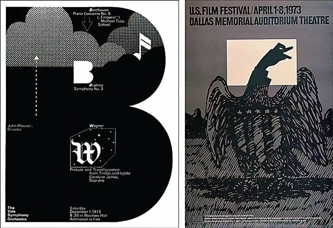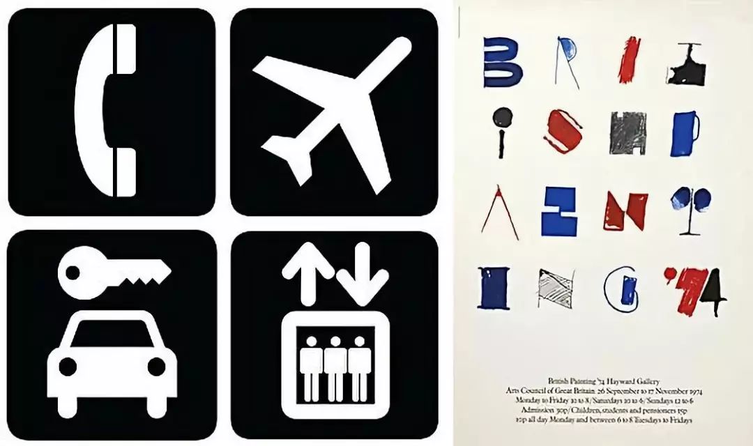 △左:美国交通部标志,1974年,设计公司:Cook and Shanosky Associates。右:英国艺术委员会海报,1974年,设计师:Alan Fletcher;设计公司:Pentagram。