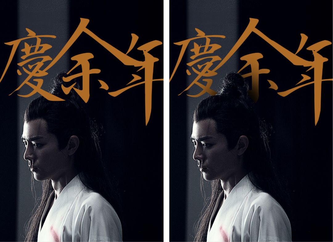 接着用书法字体写上剧名,为了让标题更有张力,我们把字号放得很大,直到撑到画面以外去。