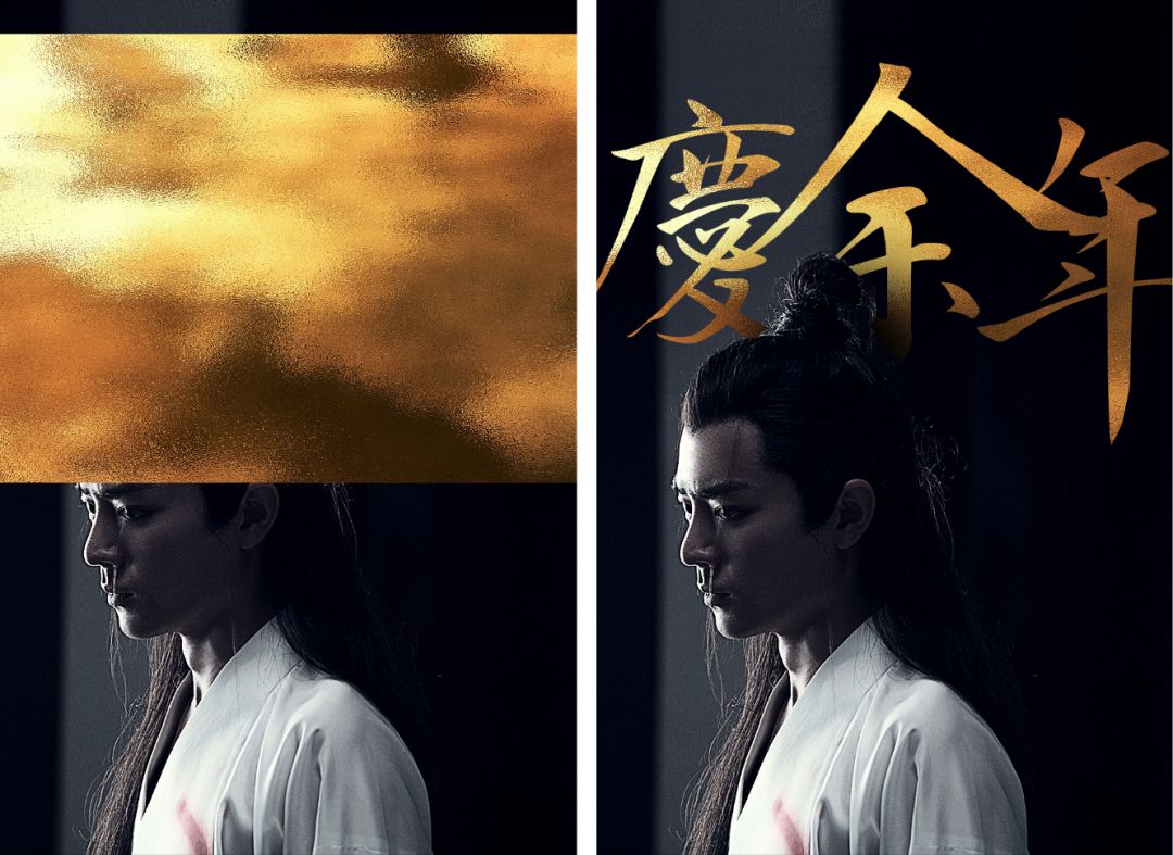 找来一张金色的纹理图,叠加在文字上,OK,质感瞬间+10086!