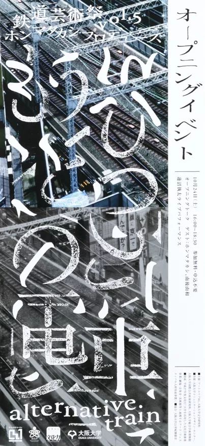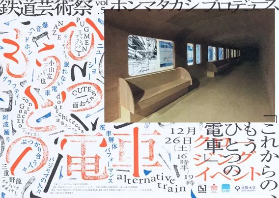 在他创作的项目中,其中一个是为日本铁路艺术节做的海报设计,三重野龙从另一个角度为我们展示了火车站的形象,在海报中结合了摄影和大量的文字。这种不规则的布局代表了嘈杂的火车站的环境。