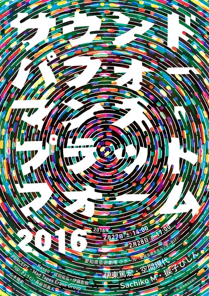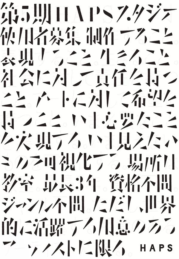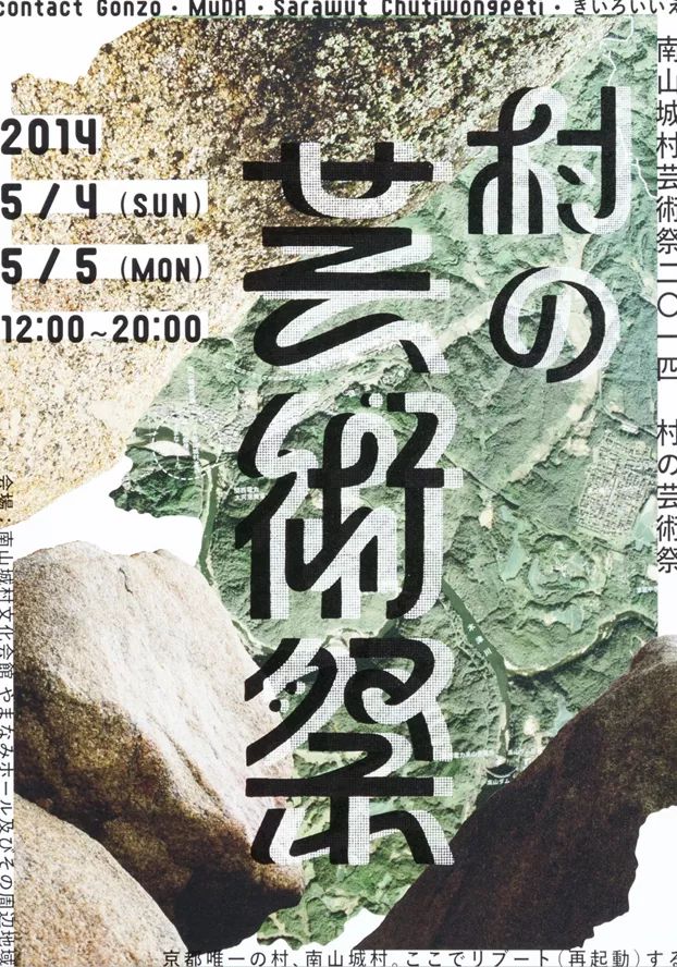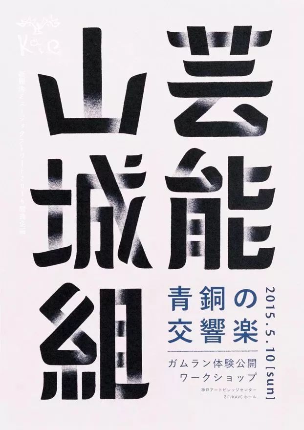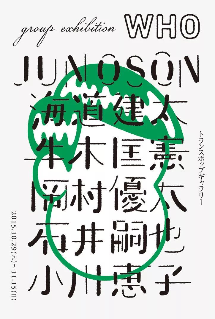 另一个项目——声音表演,是为一个音乐节而设计的,目的是为了表现这个活动所传达的精神。三重野龙希望通过视觉来想象音乐和人之间的身体互动。三重野龙说,他的创作灵感来自于对自然形态和形状的观察——树叶的纹理、木纹、鱼的皮肤纹路,他把它们转换成符号和印刷字体,因为他喜欢自然和艺术之间的交流。三重野龙在大学期间花了很长的一段时间学习绘画,当他毕业的时候,却对自己设计的作品并不见得有多满意,甚至都不敢去找工作。后来他选择在京都做一些兼职的工作,直到大学的一位老师和他取得了联系,让他帮忙做一些博物馆的视觉设计。三重野龙接到的第一个项目是为京都漫画博物馆举办的赤塚不二夫(Fujio Akatsuka)作品展览做视觉形象。现在回想起来,如果错过了那个项目,那可能会失去许多宝贵的设计经验,因为该项目不仅仅只是需要他去制作宣传单,还要为展览设计许多视觉上的内容。与使用现有字体相比,三重野龙似乎更喜欢创建新字体,那是因为他很肯定自己想亲身参与设计过程,想用手写字来开始对文字的创作。三重野龙的作品多为艺术展览的海报设计,利用阴影的效果,让字体跳脱出平面海报,立刻抓住众人的眼睛!