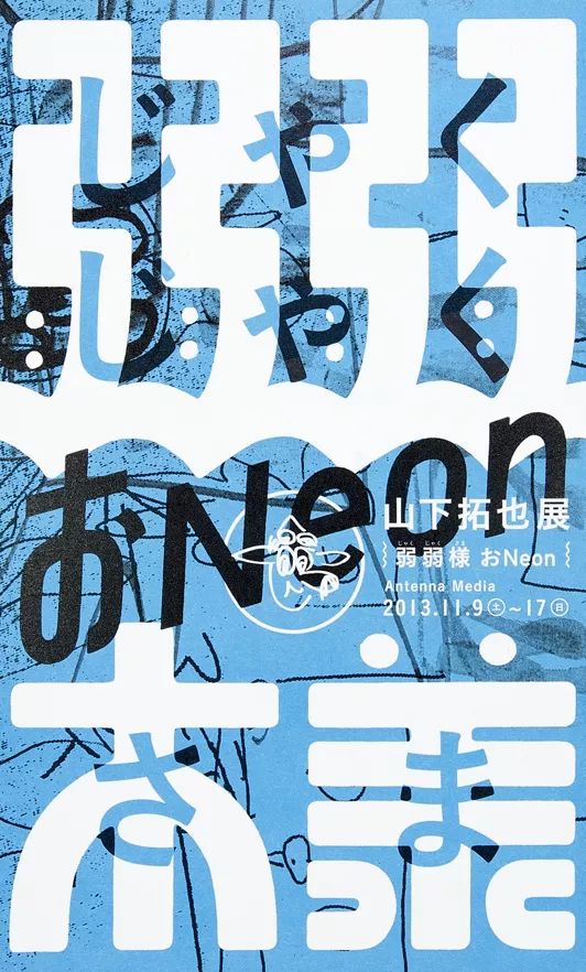 在三重野龙的作品中,无论是给画廊、商店、电影作品设计的海报还是标志设计,随处可见暴走一般的字体,充满了能量,很能体现出作品的语义和设计师的个性。他对排版和字体的大胆运用显示了他对构图的自信,最终呈现出活力十足的作品。他的作品大多数是为艺廊和展览所创作,同时也有许多以字体为主体的识别设计。三重野龙的海报设计构成简洁有力、主题清晰,同时又具备层次与细节,人文风格强烈。虽然他的作品多为展览的宣传制作物,延伸性较少,但因产量丰富,也累积了丰富多元的表现,令人印象深刻。