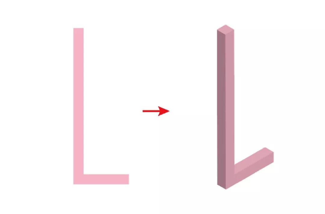 做这一类字体不像其他平面化或者C4D的纯立体化,如果一开始就想搭建完整组字的字型是不现实的,因为角度倾斜到的位置很难确定,可能在平面阶段看着是正常的,一旦立体处理就会跑到其他位置去了,一个横粗了或者短了都会影响到下一步的操作。所以我建议做一个笔画就立即给它做立体。做修改的话拉锚点也是一样方便的。
