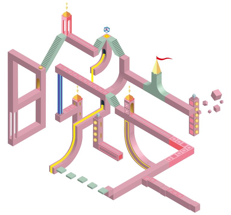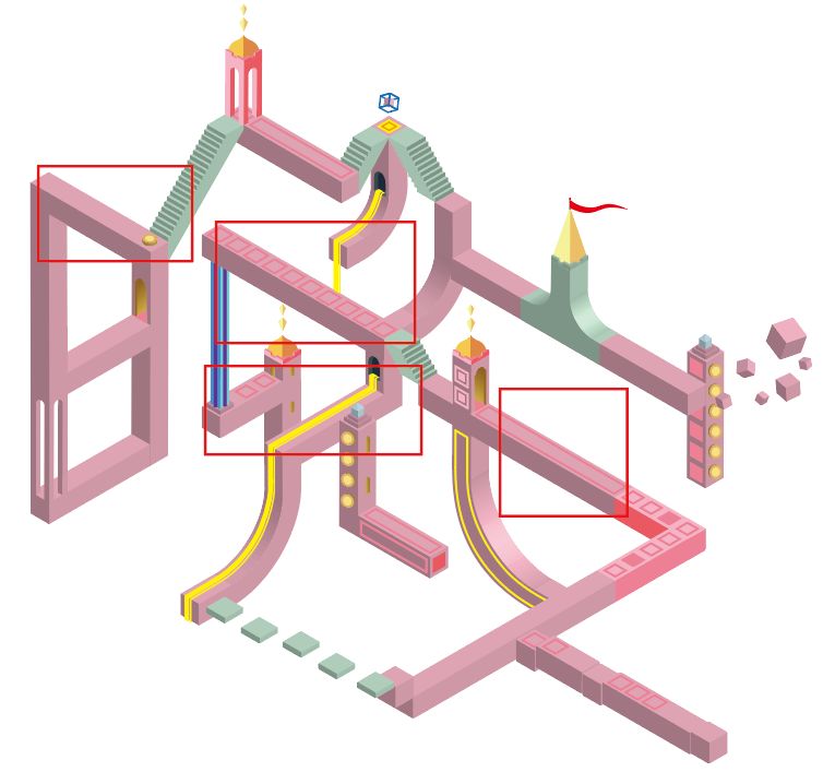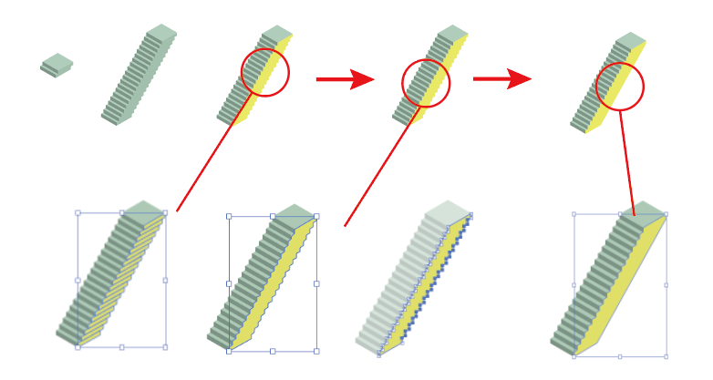 做好的小台阶给它一个一个叠加,然后取消所有小台阶的编组,黄色部分合并。套索工具圈中右侧的锚点删除,台阶底部就齐了。