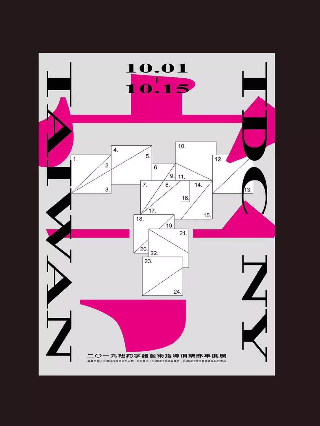 我们都说玩字体图形化,一定要注意识别度,但2018纽约TDC展台湾站展览,却剑走偏锋,用几何图形,设计了一组不太难猜的谜语。