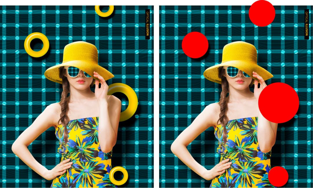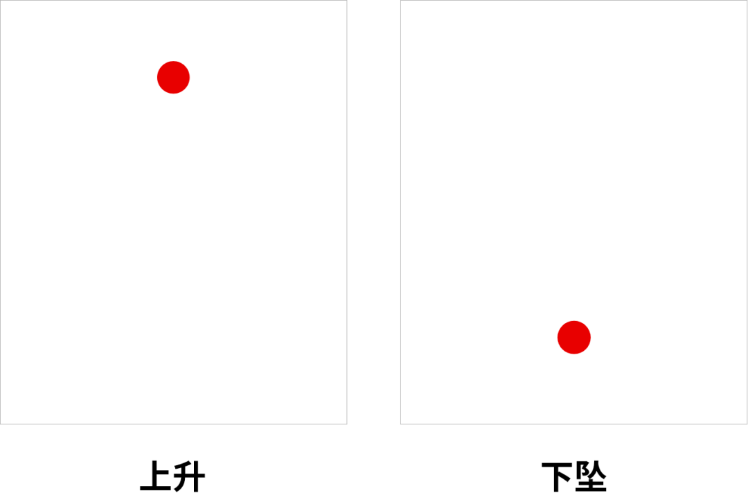 位置在画面偏上的点,会表现出上升的动势,而在画面偏下位置的点,则表现出下坠的动势。