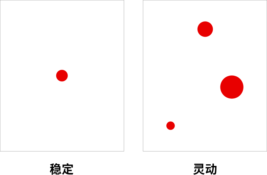 散落的点则会呈现出不稳定、灵动的视觉感受。