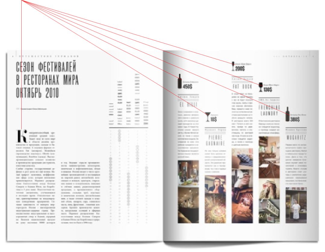 在杂志的文字排版中,文字和图标都是用来引导视线的常用方法。