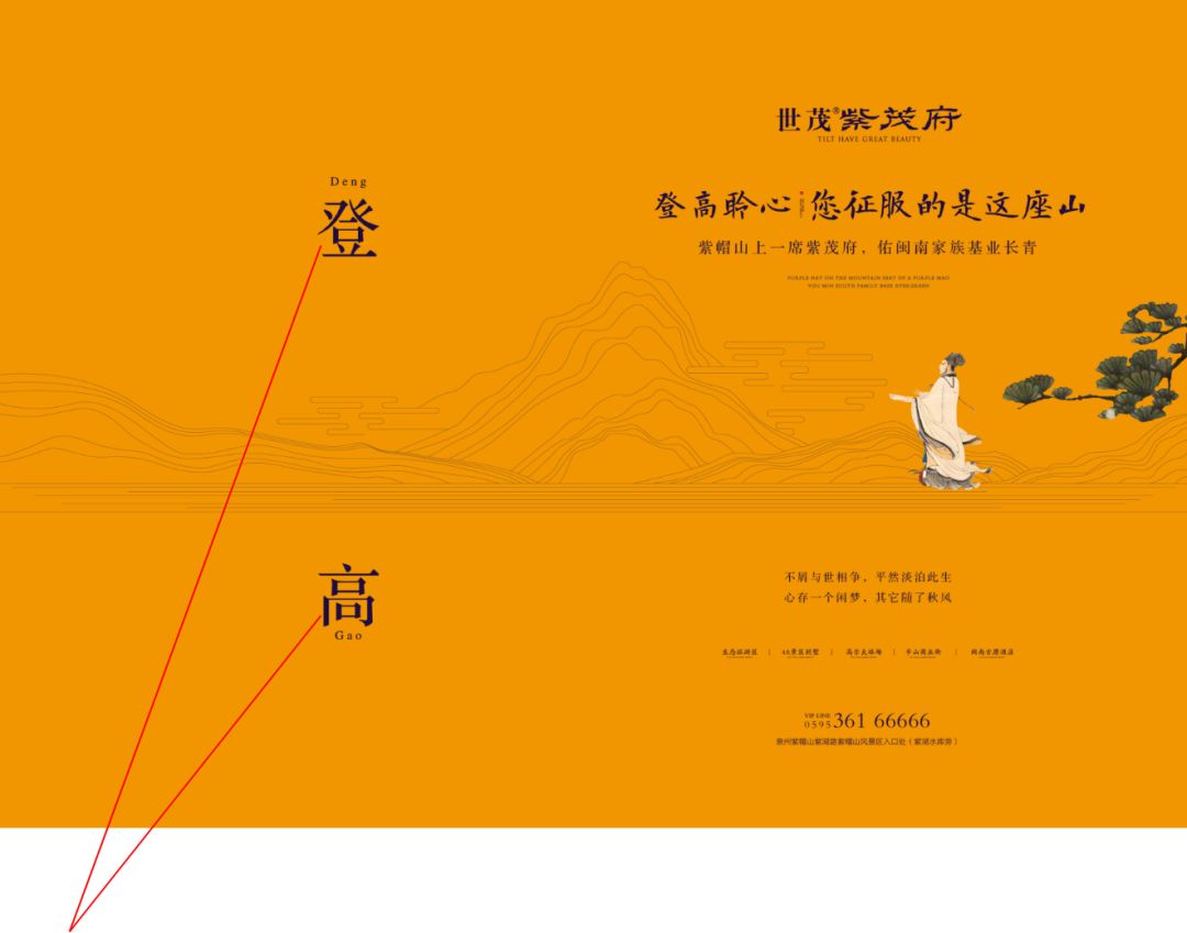 在这个画面中,虽然左边比较空旷,但是“登高”两个字与右边的小人形成了三角构图,使得画面重心非常平稳。