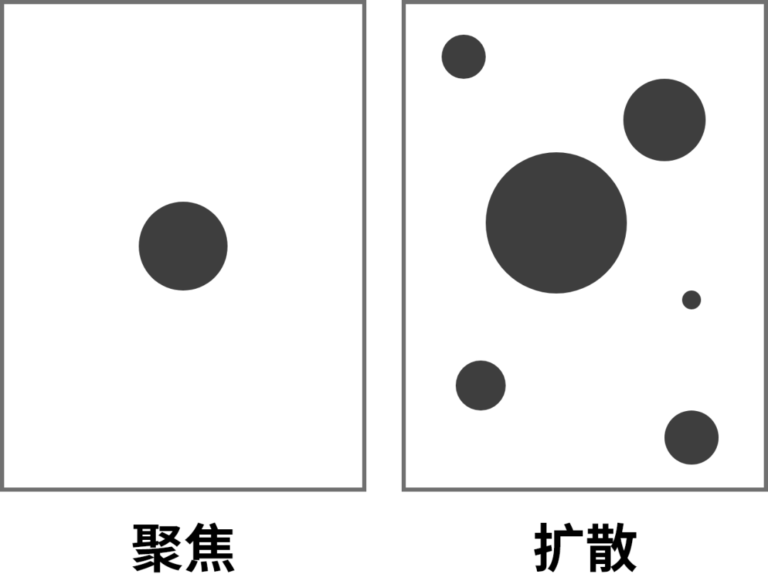 当画面中只有一个点存在,那这个点很自然的就成为了焦点所在。