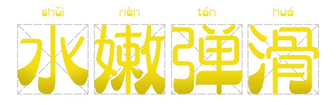 这款字体造型独特,曲线饱满,上细下粗,有趣的同时,又稳如泰山!像它的名字一样Q弹~识别度满分!