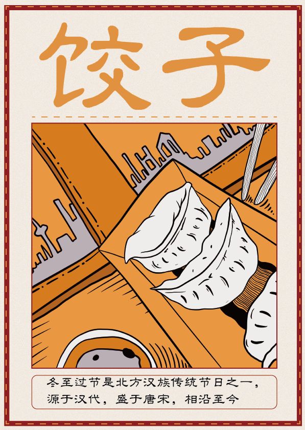 我国北方许多地区,每年冬至日,有吃饺子的习俗。相传医圣张仲景告老还乡时看到受冻的百姓,便用羊肉和一些驱寒药材以及面皮,包成像耳朵的样子,做成一种叫“驱寒娇耳汤”的药物,施舍给百姓吃。后来,每逢冬至,人们便模仿做着吃。