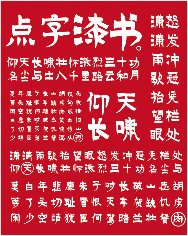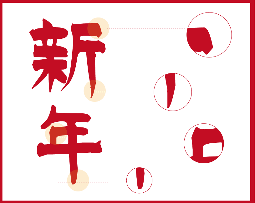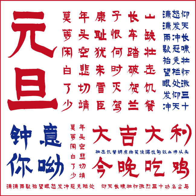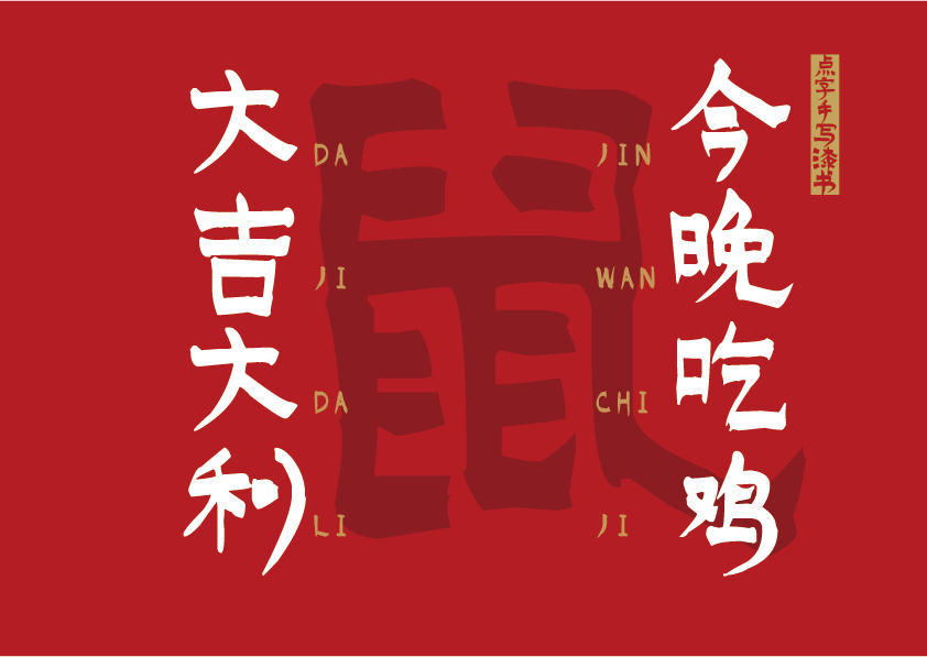 点字手写漆书风格规整,结构严谨。高度还原了金农漆书的书法韵味,如此风格迥异且气势磅礴的字体用在今晚的跨年之夜相信在合适不过了。