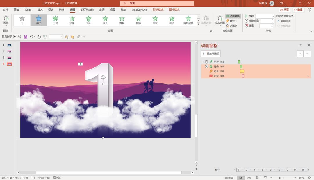 看着确实很酷,但是实话说,这个肯定不是PPT制作的。但是用PPT能不能制作类似的效果呢?这是可以的,所以接下来,我们来制作一下三维立体字,先看一下PPT制作的成品。那么这样的效果是如何制作的呢?接下来,我一步步拆解给大家看!1、插入想要制作立体字的文本,并且复制一个,缩小一下字号,更改一下颜色,一深一浅,按照下图这样进行摆放。2、同时选中两个文本框,我们选择islide插件下的补间动画,补间的数量大概有个七八十个就可以了。这样我们就实现了两个文本之间的颜色的“平滑”过渡,也就是立体感的初步形成。3、我们在原始的文本上面,设置一下文本的渐变色还要三维效果。渐变色,我们按照下图这样去调整渐变光圈。深色交替,有一种金属质感的效果。三维效果,我们选择,我们按照下图这样去调整三维效果。深色交替,有一种金属质感的效果。然后,我们将得到的数字,放到补间动画后的数字上面,这样数字轮廓会更清晰。4、我们全选数字和补间动画,复制一下,然后右键粘贴为图片。然后,我们将图片稍微裁剪一下。5、将裁剪后的图片设置一下映像效果,调整好透明度和距离。其它的数字,我们按照相同的方法去制作也可以实现这样的效果。开头的这个动画,其实是keynote的动画,叫轰然落地,我们用Powerpoint也可以实现,只不过需要通过组合动画。