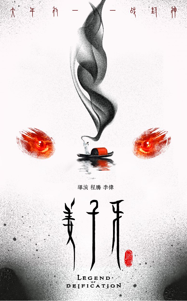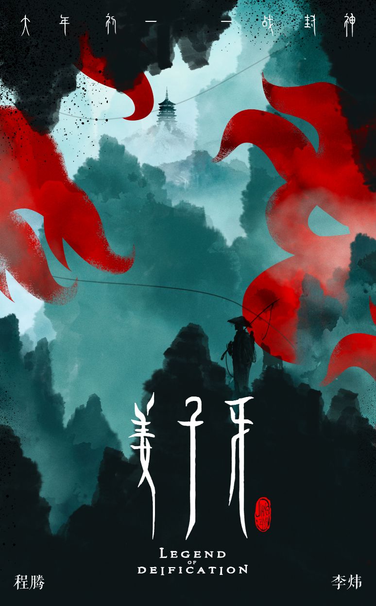 为了配合人物的细长画风,“姜子牙”三个字,也选择了以金文为主的字形,很有中国传统文化的意味~