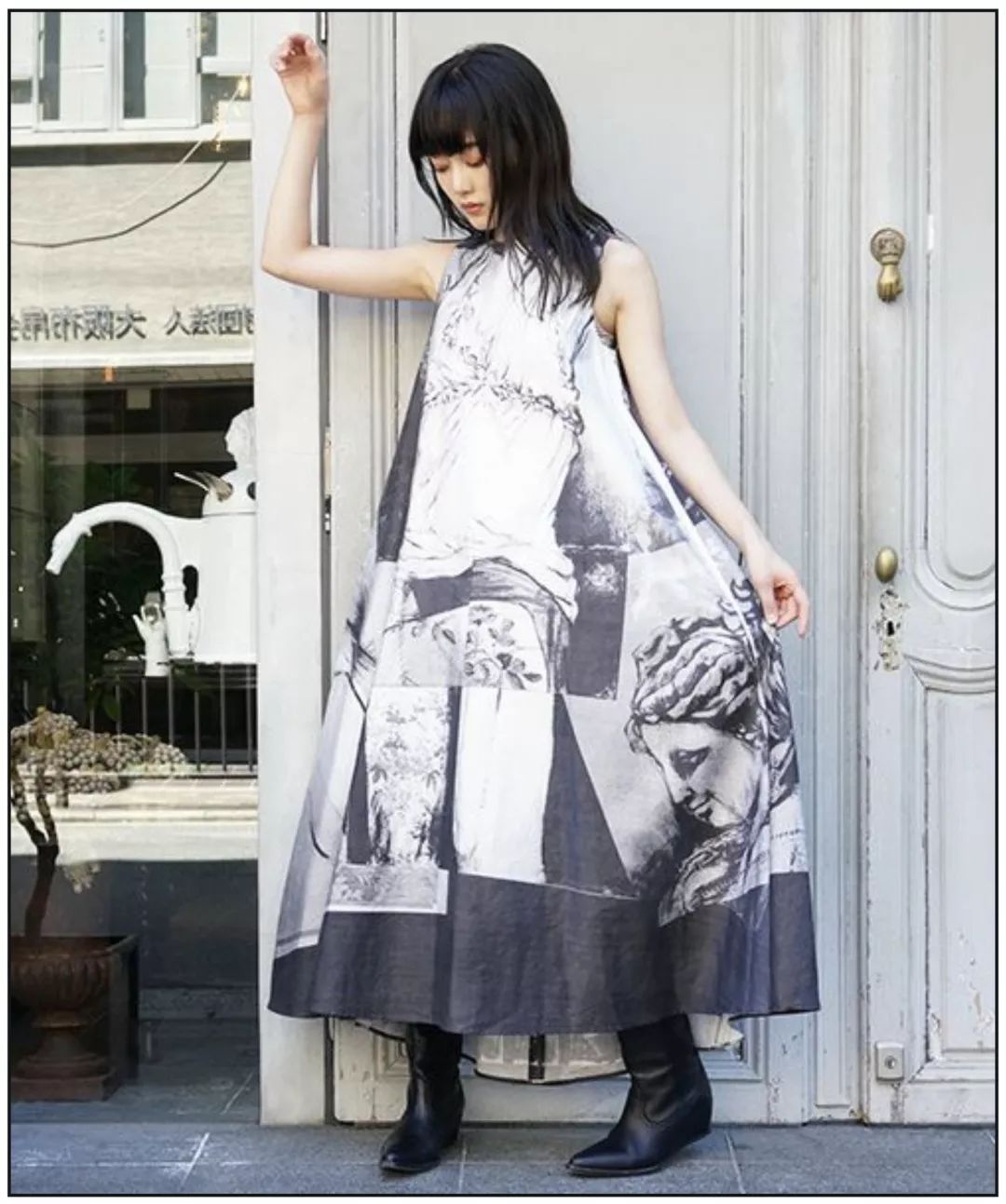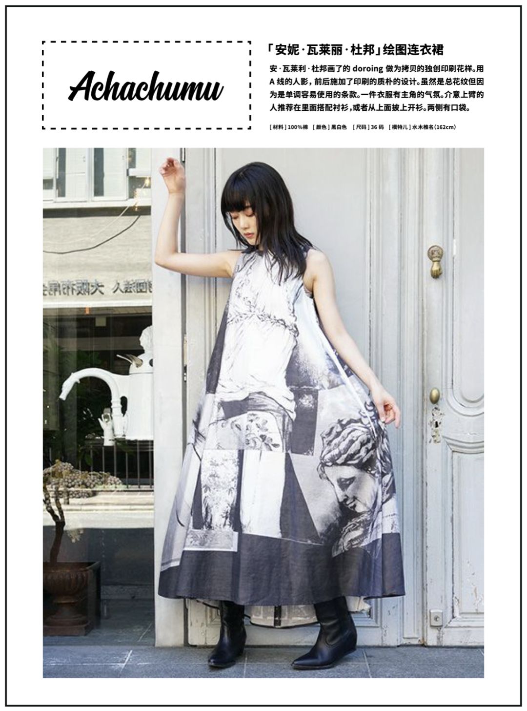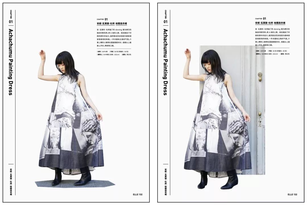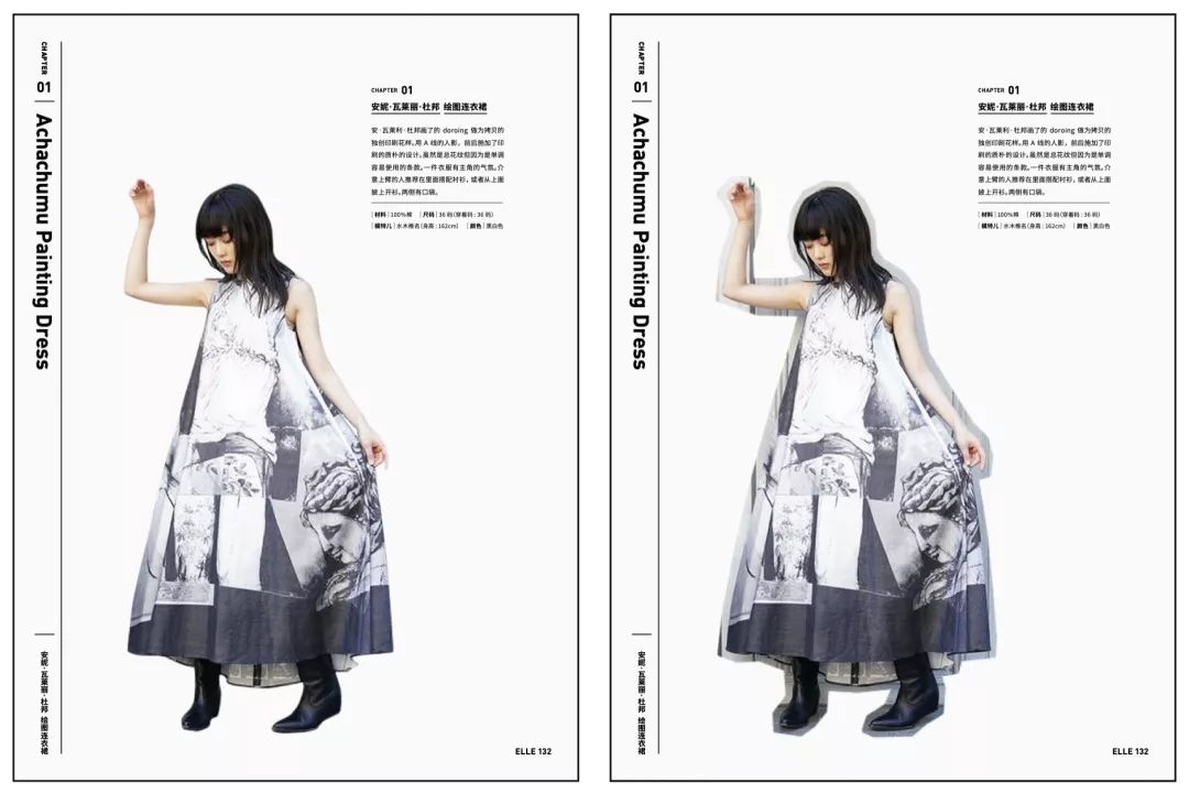 但是如果我们想要做一版能够展示裙子细节的版面,那么我们可以尝试把这个模特抠出来,裙子在纯色的背景上就足够清晰和亮眼了。