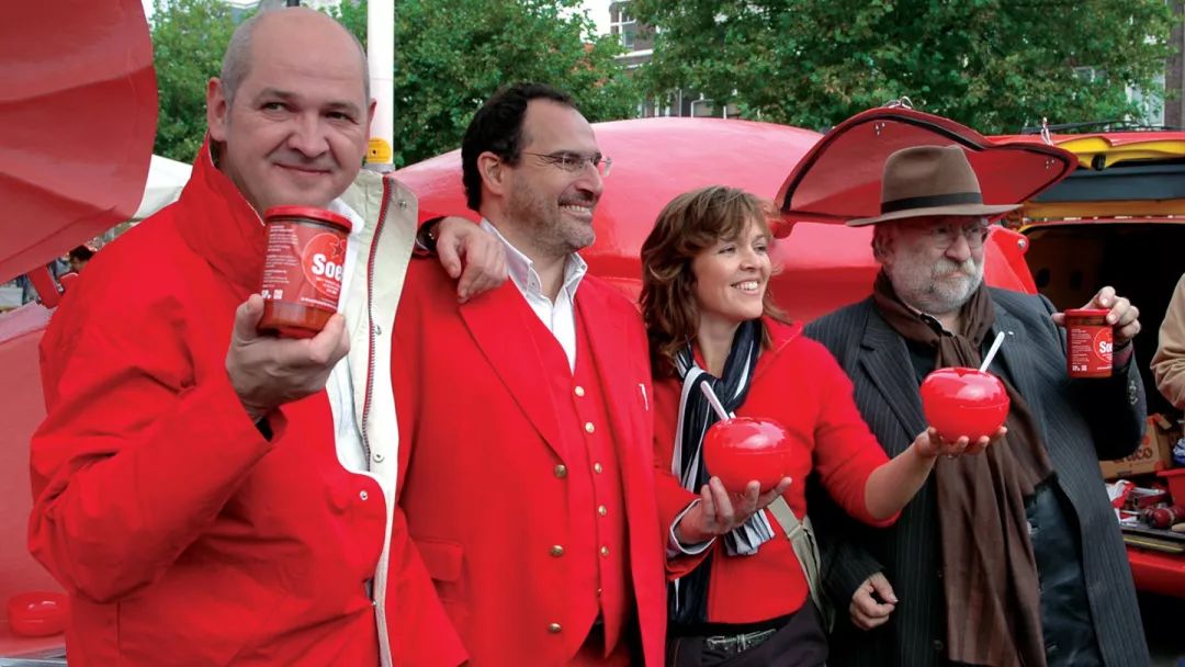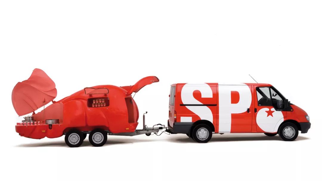 接着竟然为荷兰社会党设计出了一辆车,你能想象嘛?一个政党的候选人不是在演讲,竟然是在给你分发西红柿汤?
