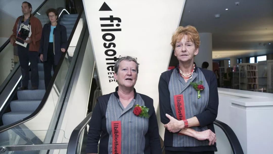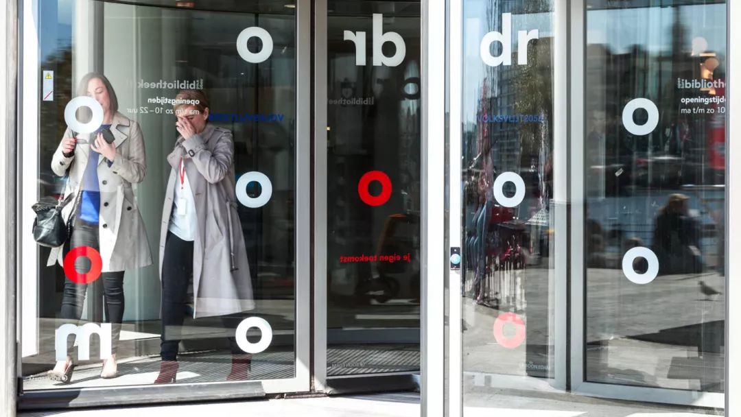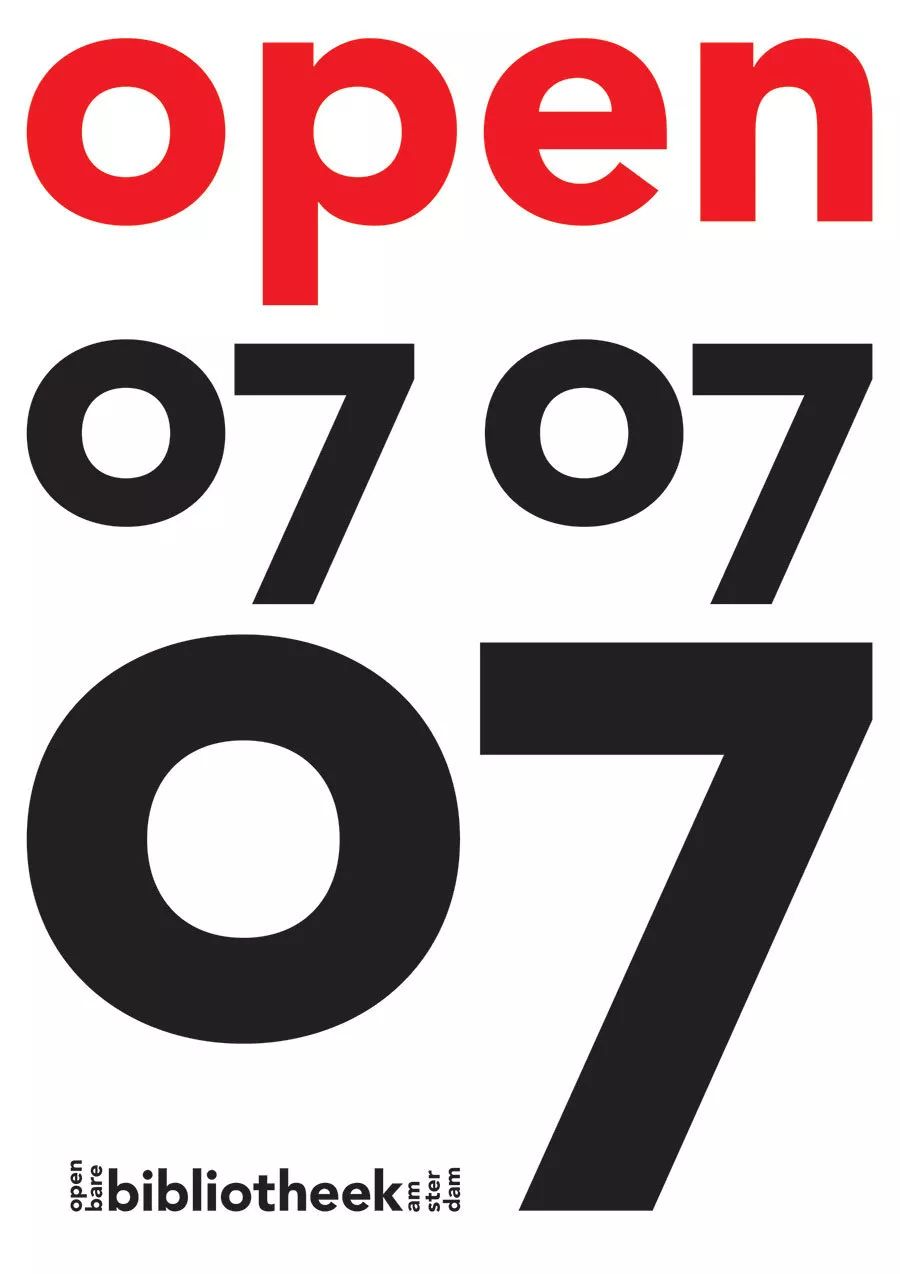 阿姆斯特丹公共图书馆的标识由小字号的“ openbare(公共的)和“ Amsterdam”(阿姆斯特丹),以及横向放置的大字号的“ bibliotheek”(图书馆)组成。缩写oba,o和a旋转了90°,呼应了这一系统。