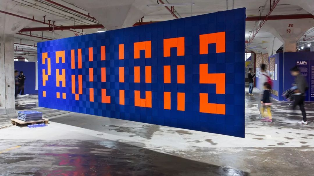 在官方网站和现场都使用了这种代码,用于节目我们将图形的截图作为设计海报、建筑立面及有轨电车的素材。