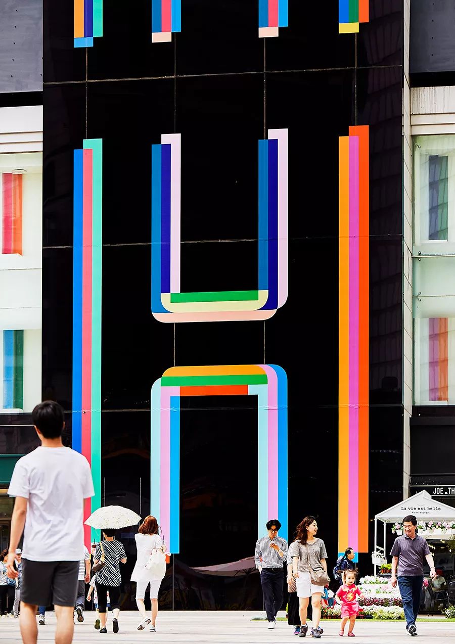 现代城市奥特莱斯是首尔东大门的一家大型百货公司。东大门是传统建筑的典范。在大门处,深绿的屋顶下,鲜艳的色光在黑暗中闪闪发光。霓虹灯也有类似的观感。