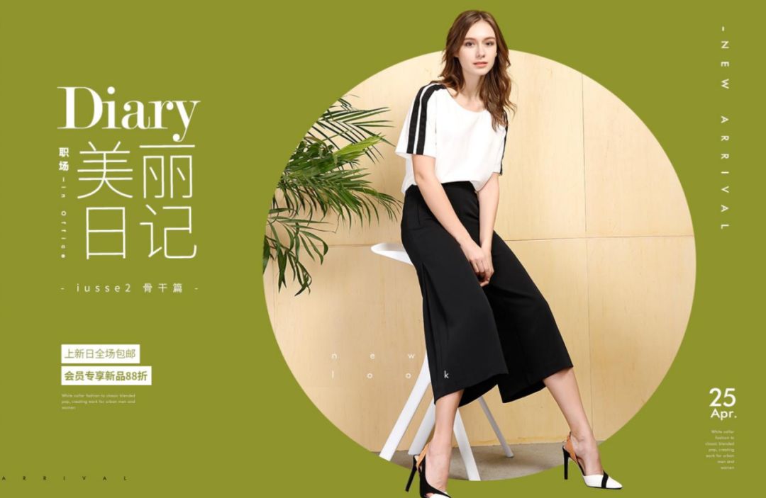 我用以一个女装模特为例,给大家演示一下如何通过点线面元素的变化,形成不同版式。