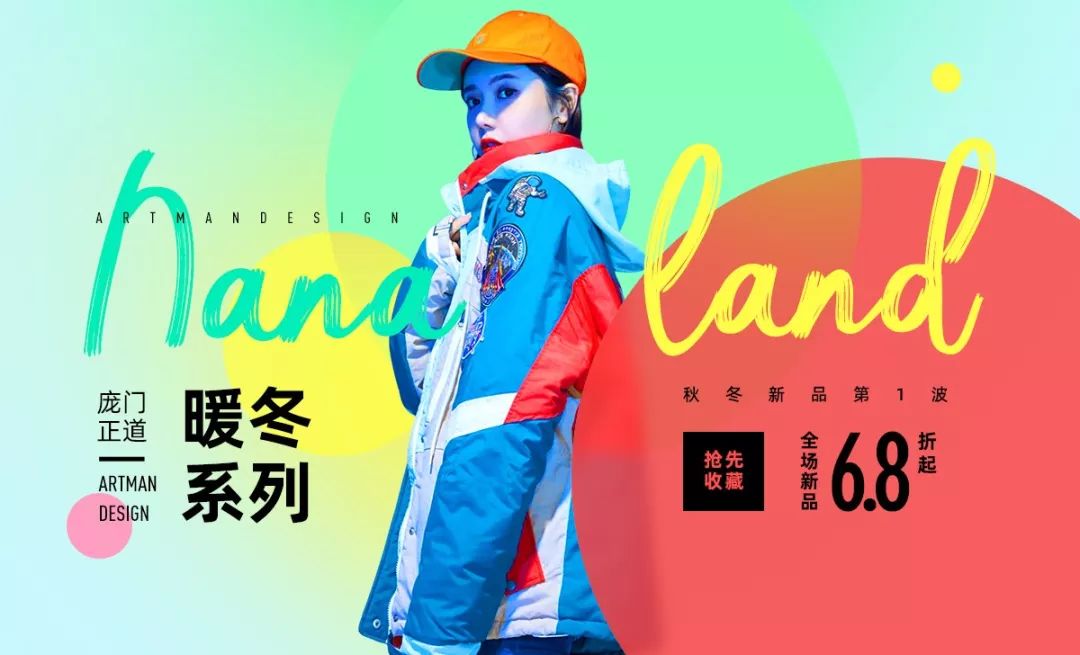 加上品牌名作为主文案,在色彩上与色块相呼应。