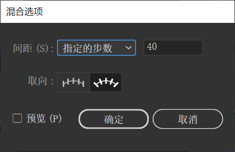 这时,双击混合工具会弹出一个参数设置,一般我们都会使用指定步数,步数越多,代表过度越平滑!