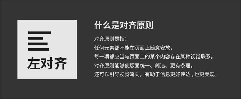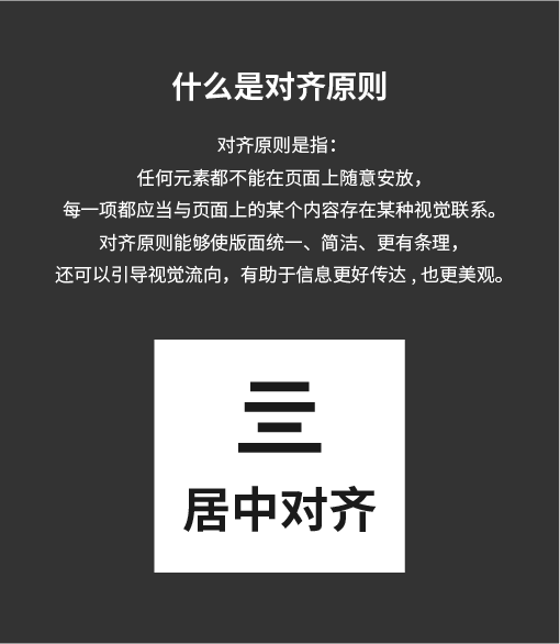对齐原则是指:“任何元素都不能在页面上随意安放,每一项都应当与页面上的某个内容存在某种视觉联系”。