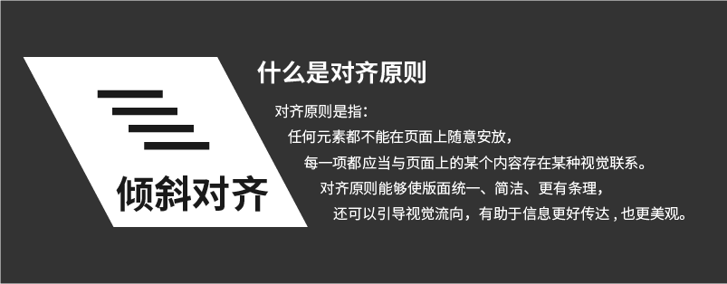 排版不一定只有横向和纵向的视觉方向,也会有其他的方式,在这些视觉方向上,也要通过对齐的原则来规整设计元素。