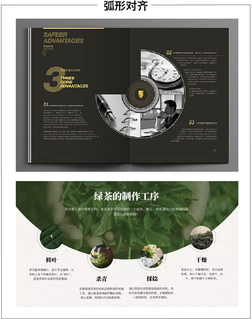 这时可以强制左右两端都对齐,最后一行靠左对齐。这是最常用的段落性文字编排形式,多运用于杂志、画册、报纸等多文字信息内容的编排。使段落文字严谨工整,让版面清晰有序而有条理,提高阅读效率。