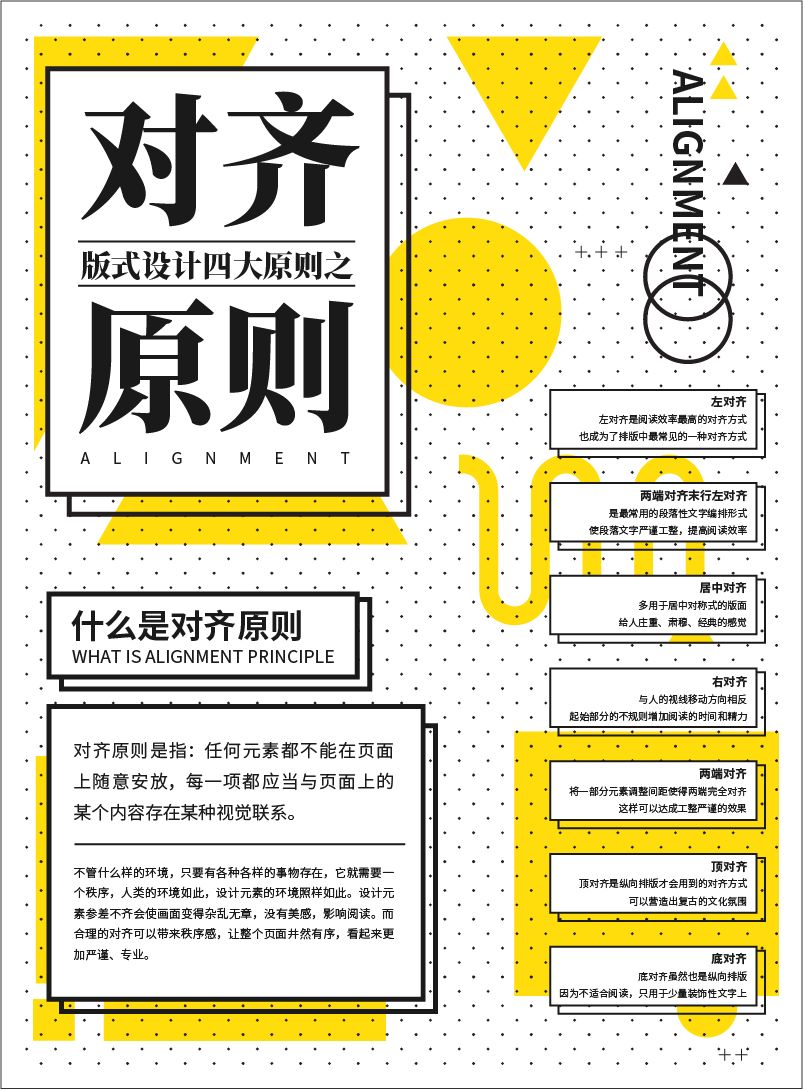 重复、对比、对齐以及亲密性是版式设计中的四大原则,各种排版形式与规则都是基于这四大原则衍生而来,而掌握这些具有指导性的设计原则,能够帮助我们在短时间内,更快更好的达成设计目标。本期给大家讲解四大原则之——对齐原则。