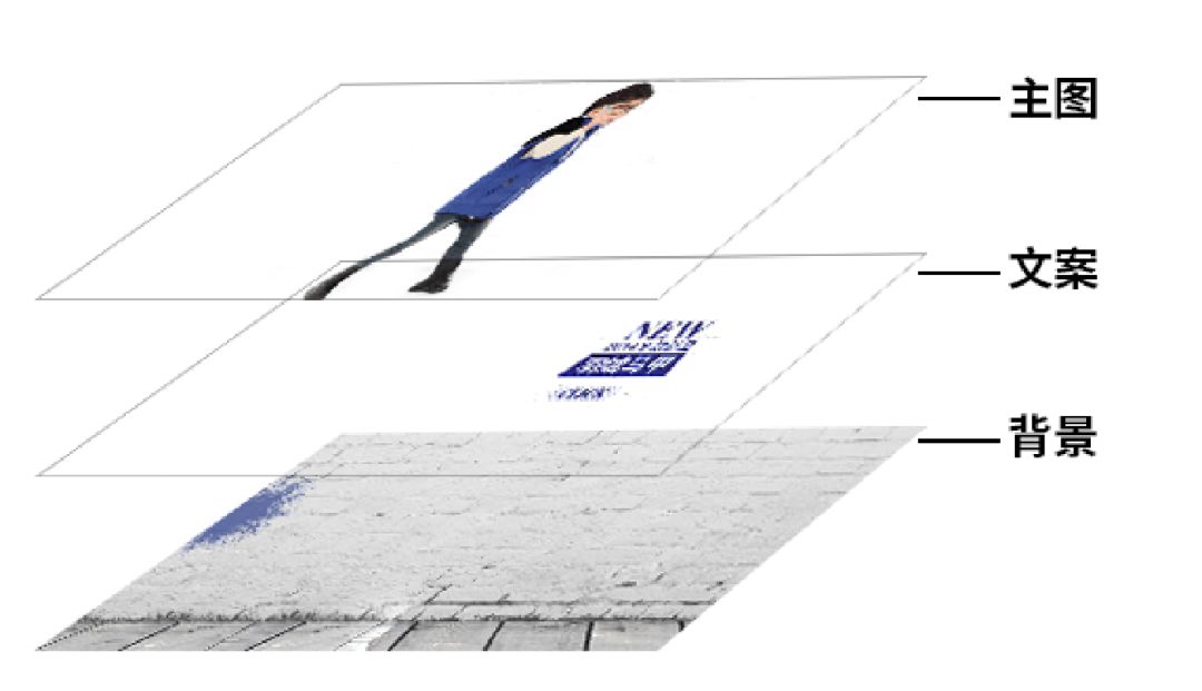 我们都知道画面主要由三类设计元素构成:文案、主图、背景。
