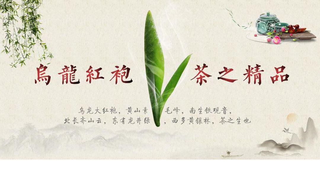 下面这张图里用到的图片素材多达四五种,栁叶、茶叶、茶壶、水墨背景这些素材无论是颜色上,还是造型上,都存在着很大的差异,因此它们放在一起完全就是胡乱拼凑。